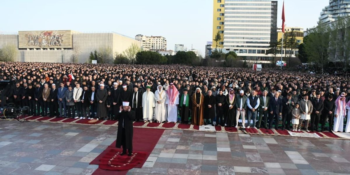 Në Tiranë, besimtarët u falën në “Sheshin Skënderbej”.