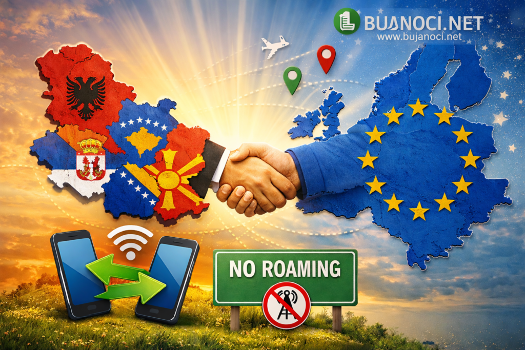 Bashkimi Evropian ka propozuar hapjen e negociatave me vendet e Ballkanit Perëndimor — Shqipëri, Kosovë, Serbi, Bosnjë e Hercegovinë, Maqedoni e Veriut dhe Mal të Zi — për të zgjeruar përfitimin e “Roam Like at Home”. Kjo do të thotë që qytetarët nga këto vende mund të përdorin telefonin, mesazhet dhe internetin në vendet e BE-së pa pagesa shtesë të romingut, ashtu si qytetarët e Bashkimit Evropian.
