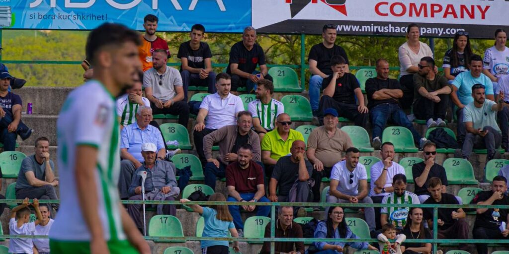 “18 Qershori” të jep menjëherë përshtypjen e një ambienti që është i lidhur me komunitetin. Në tribuna nuk sheh vetëm grupe tifozësh, por familje të tëra me fëmijë, të rinj e të moshuar bashkë, me një kulturë përkrahjeje që nuk të bie në sy me ashpërsi, por me prani.