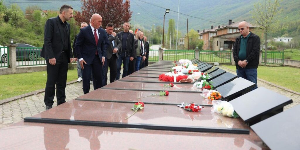 “U ekzekutuan mizorisht mbi 40 shqiptarë, shumica të rinj. Vendi dhe njerëzit e përzgjedhur nuk ishin rastësi. Aty u godit me qëllim, për të thyer shpirtin e rezistencës. Sot e asaj dite, autorët e kësaj masakre ende nuk janë vënë para drejtësisë”, theksoi ai.