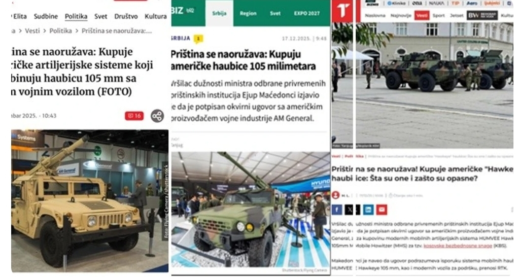 Portali BLIC shkroi se “Prishtina po armatoset: blen sisteme amerikane të artilerisë që kombinojnë obuzin 105 mm me një automjet të lehtë ushtarak”, duke e paraqitur marrëveshjen si zhvillim kërcënues për sigurinë rajonale.