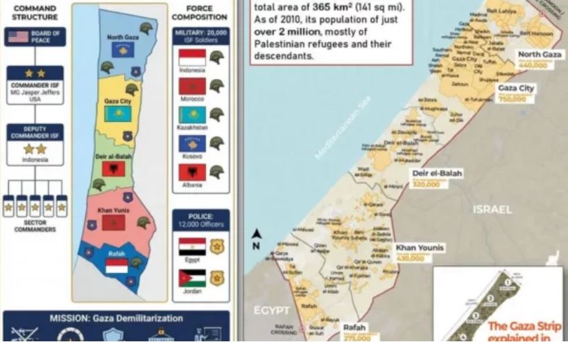 Forca Ndërkombëtare Stabilizuese për Rripin e Gazës pritet të ketë rreth 20 mijë ushtarë, 8 mijë nga të cilët i ka premtuar Indonezia, një gjeneral i të cilit vend do të jetë zëvendëskomandant i kësaj trupe.