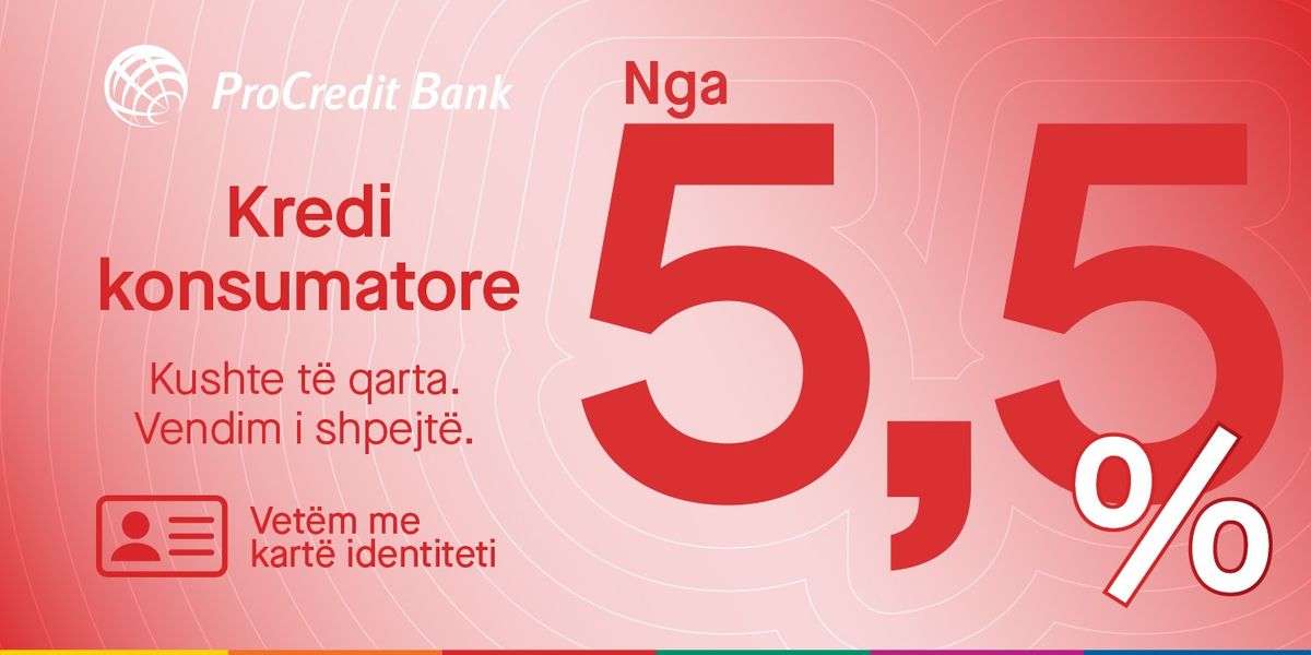 Kredi konsumatore nga ProCredit Bank – vetëm me letërnjoftim, vendim për 24 orë, normë fikse interesi prej 5,5%
