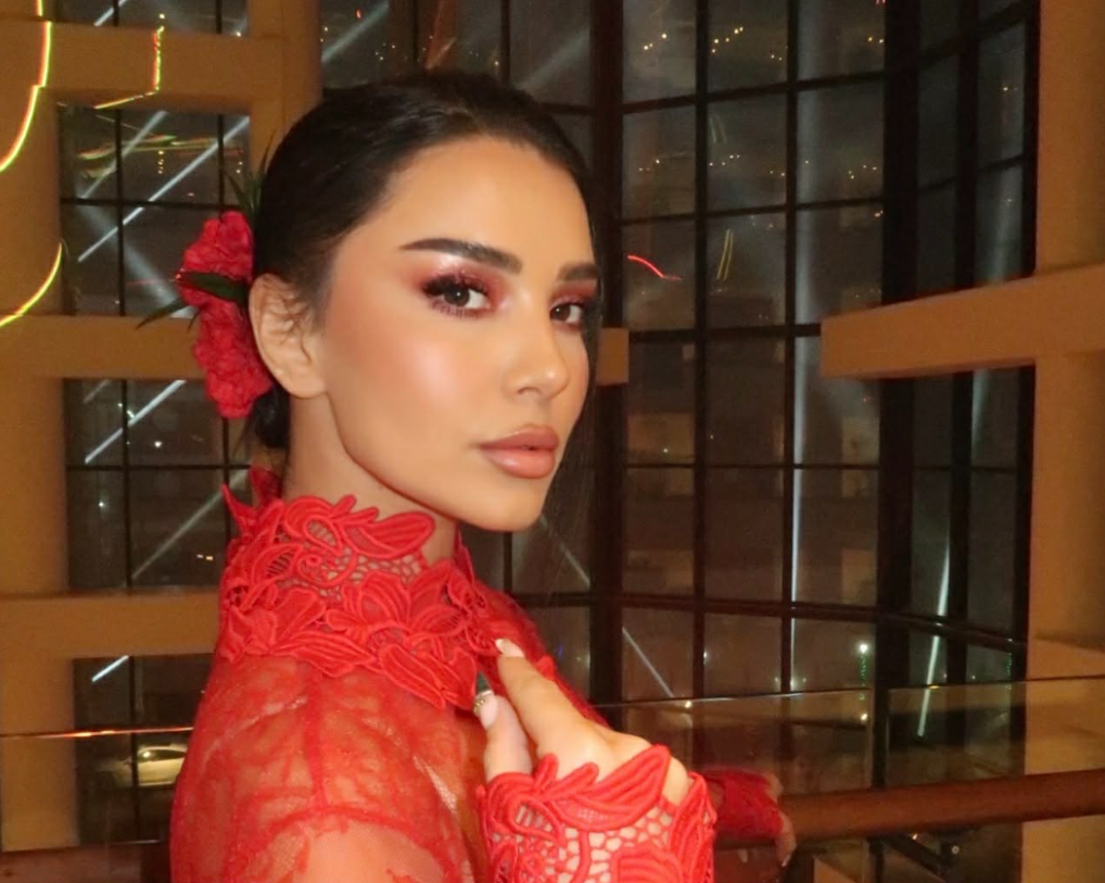 E veshur me një fustan të kuq, që i shkon kaq shumë për shtati, Megi duket për bukuri.