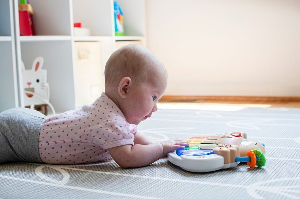 Vendosni një lodër pak jashtë shtrirjes së foshnjës.