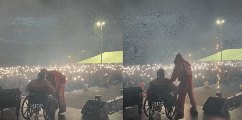 Ai fillimisht doli në skenë me karrocë, por më pas u ngrit dhe performoi në këmbë për publikun, duke interpretuar disa nga hitet e tij më të njohura, përfshirë edhe “Bad and Boujee” nga koha e grupit Migos.