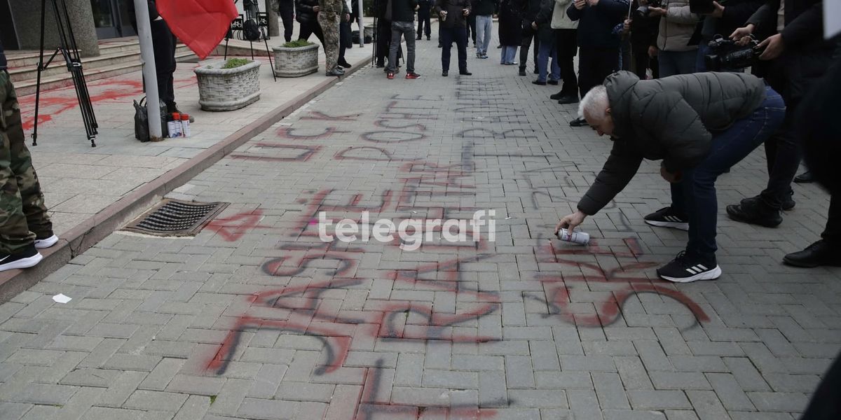 Pas përfundimit të protestës, pjesëmarrësit hodhën ngjyrë të kuqe para objektit të Kuvendit dhe lanë një mbishkrim në tokë, duke shprehur kështu pakënaqësinë e tyre ndaj mënyrës se si po prezantohet historia e luftës.