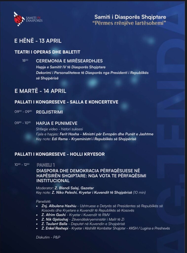 Në kuadër të panelit me temë “Diaspora dhe demokracia përfaqësuese në hapësirën shqiptare: nga vota te përfaqësimi institucional”, Rexhepi do të përfaqësojë interesat dhe zërin e shqiptarëve të Luginës së Preshevës në një nga forumet më të rëndësishme mbarëkombëtare.