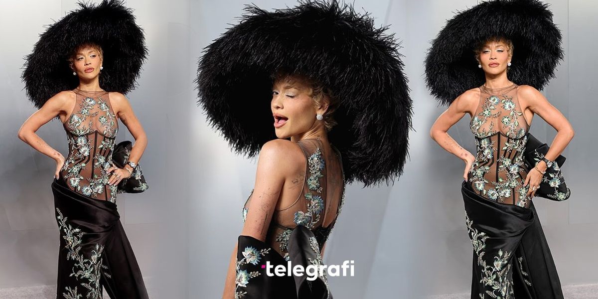 Ajo e kombinoi këtë aksesor me një fustan transparent me korse nga koleksioni Couture SS26 i stilistes Tamara Ralph, i zbukuruar me motive lulesh dhe gurë të çmuar, ndërsa fundi prej sateni formonte një bisht dramatik.